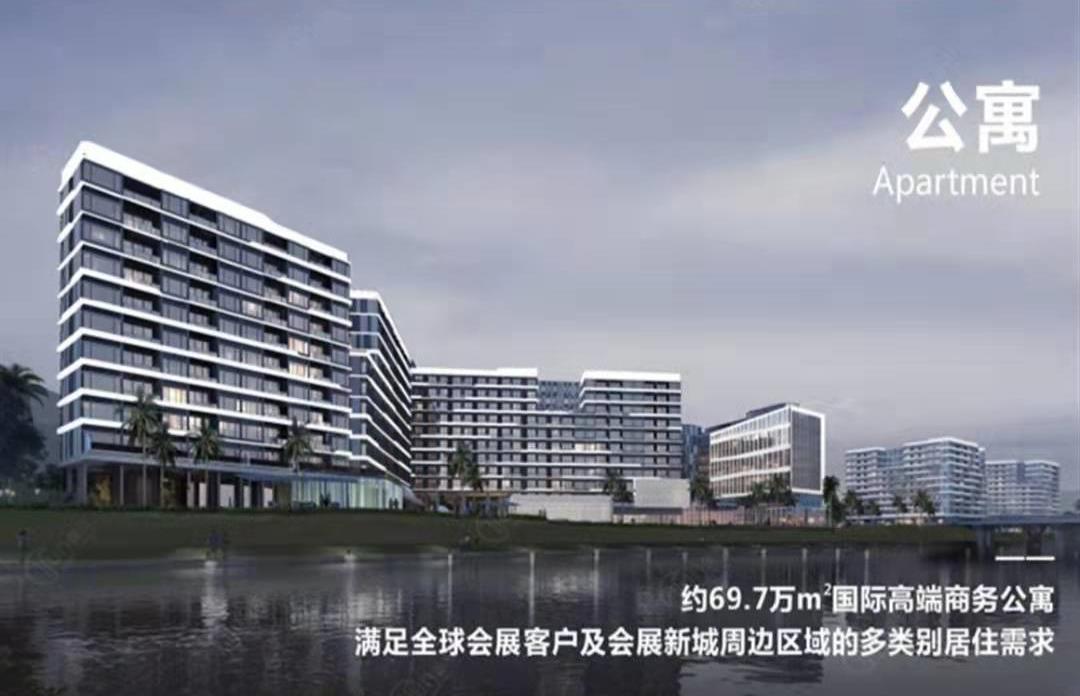 會展灣南岸為300萬㎡會展主題綜合體的首發項目,占據新會展中心重要的門戶位置,總體量約20萬㎡,涵蓋寫字樓、公寓、酒店、商業四大業態。