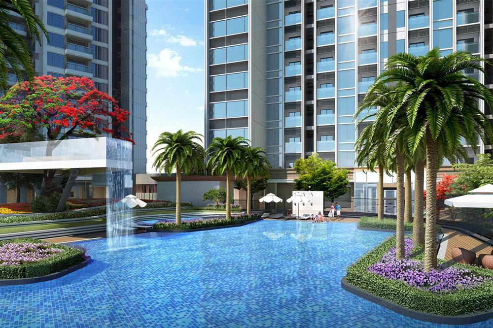 攜手國際知名園林公司AECOM,打造藝術園林,藍寶石泳池、童趣天地等十三重景觀節點;市場獨有3米高寬幕水簾